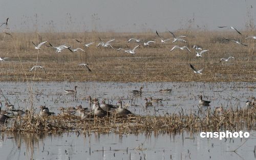 新疆冰雪消融水质转好引百鸟栖息(组图)