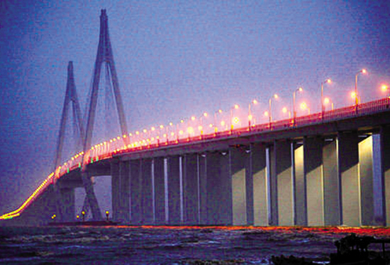 ●大桥的工程量和技术难度在我国桥梁建造的版图上还从没出现过,建设只用了3年零7个月的时间,整整比计划提前了8个月。