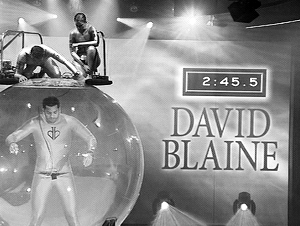 随后,布莱恩身着银色潜水衣,走进一个直径2.5米、注满水的玻璃球内。起初10多余分钟,大卫·布莱恩一度保持静止姿势。自第16分钟开始,大卫·布莱恩的脸部呈扭曲状,嘴唇显现青紫色,不过,他坚持到17分4秒时才浮出水面。最后,现场发出欢呼声。
