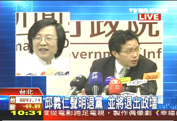中国台湾网5月5日消息 据台湾TVBS电视台报道,台当局“行政院”今天上午召开“院会”,“副院长”邱义仁请假未上班,由“新闻局长”谢志伟代为发布退出民进党的声明。