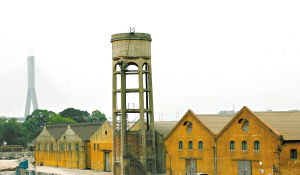 走进太古仓,最先映入眼帘的是在太古仓旁边矗立着的一个高大的石塔。土黄色外墙,斑驳的岁月留痕,由一块块土砖围建而成,用铁做成的楼梯虽然已变成了铁锈色,却依然非常结实。“它是一个储水塔,如果仓库着火了,人们就会用这里的水来进行灭火!”广州港集团有限公司河南港务分公司党委书记黄剑明告诉记者。