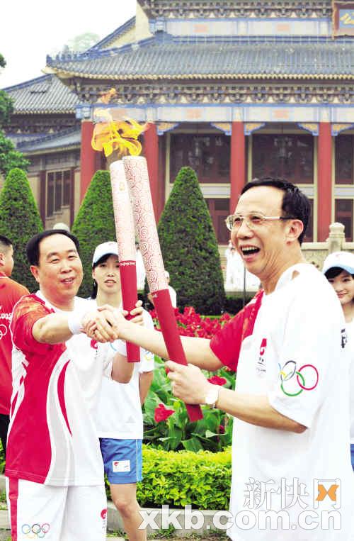 11时23分,Helmer 顺利将第81棒火炬手曾剑强的祥云火炬点燃,标志着奥运火炬传递广州站中,第一次由两位外国籍火炬手之间的火炬交接顺利完成。