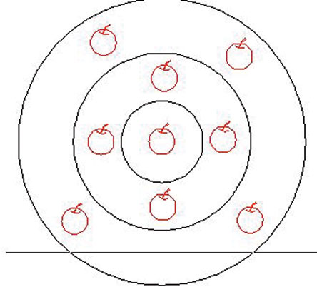 第一章的练习有10道题目,林女士费了一个小时的时间只解出了一道,题目是:将9个苹果,放入大、中、小三个盘子里,大盘要比中盘多4个,中盘要比小盘多4个,该怎么放?她最后把三个盘子叠起来,最小的盘子里面放一个,另外两个里面各放四个(如图),勉强得出答案。