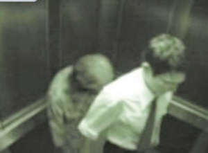 该视频表面看起来像是大楼监视器的录像,长约1分49秒。视频中,两个白领模样的男子一起走进电梯,且电梯里只有他们俩。随后,电梯停住,两人一前一后走出电梯。此时,一个男子的后面突然冒出一位低头驼背的老太婆,慢慢地跟在男子后面,十分恐怖。