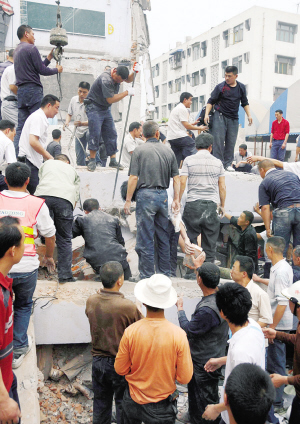 截至昨日17时40分,当地部门和村民已经抢救出数十名学生。记者在现场看到,有些被埋压的学生身体还在动,同时能听到被埋学生的呼救声。