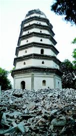 阆中明代白塔在地震中拦腰折断