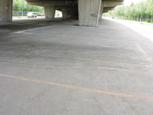 根据货车司机的叙述,红色的桑塔纳是从二环桥底下的一块空地上冲出来的,这片空地长百余米,地上画了好几条橙色和白色的线,围成了几个长方形。