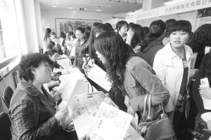 2008年4月26日,众多女大学生参加“辽宁首届女大学生就业专场招聘会”■资料图片