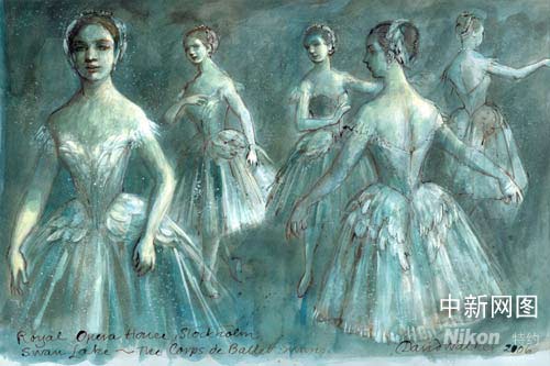 图为瑞典皇家芭蕾舞团新版《天鹅湖》服装设计图,它一举摒弃了古典的天鹅短裙并大胆改为齐膝长裙。