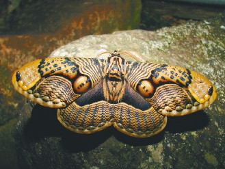 中新网5月15日电 “阿里山受镇宫停在神像上的不是皇蛾,是枯球箩纹蛾!”台湾嘉义县一学校校长张文良在村落发现俗称“阿里山神蝶”的枯球箩纹蛾相当高兴,赶紧将牠介绍给全校师生。