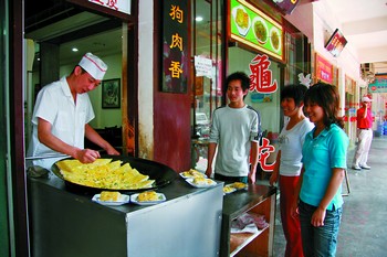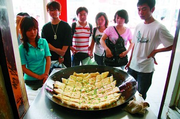 在强民小吃店门前,我们看到的人气是豆皮带来的。