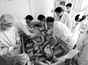 马元江在新桥医院重症监护室接受众多专家会诊 记者 周舸 摄