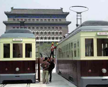 为了使消失五十年之久的“当当车”重现京城,今年年初,改造中的北京前门大街按照计划铺设了有轨电车的铁轨,四月二十三日,由北京地铁车辆厂自行研发并生产的有轨电车从平板挂车上卸下,放置在轨道上,虽然线路不长,但毕竟还是让人钩想起当年天桥交通的一大景观。