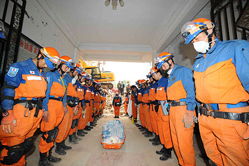 在机场举行的救援队解散仪式上,担任团长的外务省国际紧急救援室室长小泉崇赞扬队员们称:“虽然遇到了各种各样的困难,但大家用团队精神克服了它们,并给中国国民带去了勇气。”