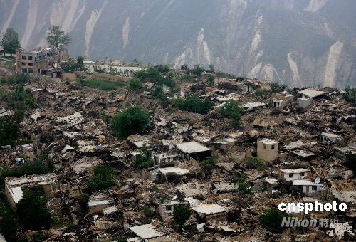 图:羌寨地震后变废墟惨不忍睹 中国新闻网 中国新闻网官方账号 2008.05.2217:26 关注 5月22日是汶川大地震第十一天,空中鸟瞰汶川县城十余公里外的一座羌族山寨震后变为废墟,令人惨不忍睹。 中新社发 贾国荣 摄