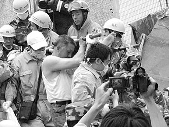 震后一幕幕惨烈的情景,一次次进入救援人员的眼帘。“想哭!”“恨只恨没有飞毛腿,帮我们把每一个伤员尽快送到医院救治。”顾阿荣沙哑的声音,吐露着全体队员的心声。
