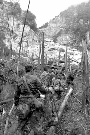 随后,记者来到了三边坪,这里已成了救援部队的大本营,上万救援部队从这里挺进了银厂沟。