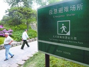 园林专家表示,规模不断扩大的城市,面对各种灾害袭击,其脆弱性也不断显现。因此,利用城市现有的绿地、公园等资源,不断完善城市的避难防灾功能尤显重要。2003年10月,北京建成国内第一个防灾公园——北京元大都城垣遗址公园。它拥有39个疏散区,具备了10种应急避难功能。从此北京的防灾公园建设就开始陆续展开,目前城八区已经有30余处防灾公园或者绿地。统计数据显示,北京市现有可利用作为避难场所用地的总规模为5312.5公顷,其中八个城区内公园共有140余处,市、区级大型体育场13处,还有学校操场等。