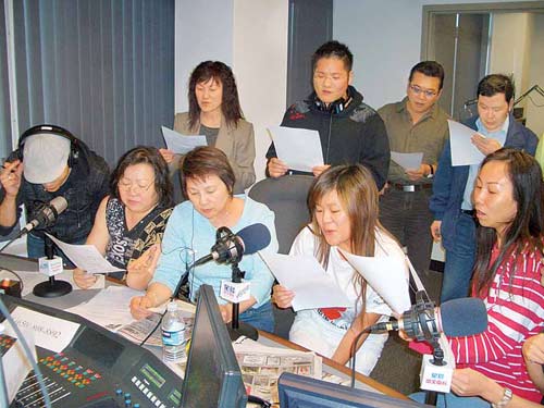 星岛中文电台粤语、国语台全体成员义唱筹款。