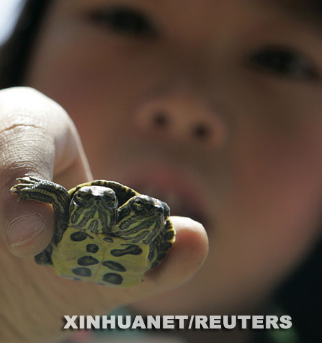 日本发现罕见双头小龟(组图)