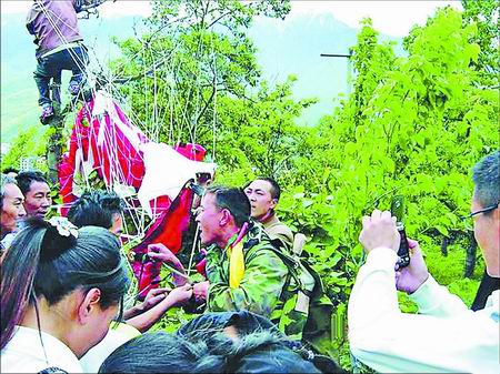 游客拍下伞兵着陆茂县灾区场景