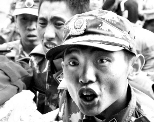 正是怀着这样一种信念,余震来临需要暂时躲避时,正在奋不顾身抢救伤员的战士忍不住跪地大哭:“让我再去救一个吧,我还能救活一个!”