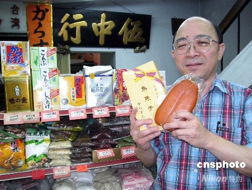 位于台北市衡阳路的“伍中行”,是台北当地“老上海”云集的南北货商行。“伍中行”传人周老板介绍,该行贩售台湾特色的乌鱼子、上海苏式点心等已有七十多年的悠久历史。中新社发 许晓青 摄