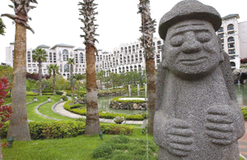 济州岛号称“韩国夏威夷”。岛上有著名的“三多”说法,即石头多、风多、女人多,其中石头是指一种独特的黑灰色火山石。用它雕刻成的守护神被当地人亲切地叫作“石头爷爷”。石头爷爷大多是眼睛凸出、鼻子粗大、嘴唇紧闭的样子。传说左手在上的石头爷爷是武官,右手在上的石头爷爷是文官。摸摸石头爷爷的鼻子可以生儿子,摸摸石头爷爷的肚子和手则可以升官发财。据说韩国情侣结婚后,必定要到济州岛,拜石头爷爷,以求多子多福。