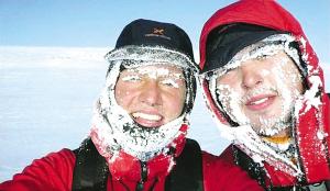 去年4月8日,詹姆斯和罗伯从格陵兰岛的卡纳克市出发,开始了“从北极到南极”的探险之旅。然而在第一天,他们就差点遭遇了生命危险。罗伯回忆说:“我们乘着雪橇滑行,我的手套掉在了雪地上,当我走下雪橇去捡时,掉进了一个冰窟窿里,脑袋撞昏了。我在水中溺泡了4分钟,詹姆斯赶到将我救了上来……我在医院中昏迷了4小时才苏醒过来。”