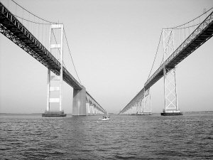 为了方便海湾两岸的交通往来和来此旅游的国内外游客,美国政府投资兴建了切萨皮克湾大桥,并于1964年通车。该桥全长37公里,被称为“现代世界七大奇迹之一”。切萨皮克湾大桥是一座双向越洋大桥,从诺福克到特拉华半岛,在切萨皮克湾和大西洋之间架起了一座水上长廊。在桥中间的人工岛上,既可以观看大西洋湾口、世界最繁忙海运航道的壮观景象,又可以钓鱼、就餐、购买纪念品。另外,大桥每年会开放一次让公众步行或骑自行车观光。