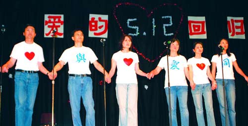中新网6月8日电 据美国《侨报周刊》报道,6月1日晚上7时,由华夏爱迪生中文学校、中华文化基金会、乡音合唱团、华夏爱迪生舞蹈团、李文斯顿华人协会主办的“爱的回归”大型赈灾义演,在多个社团和众多新州艺术家的大力支持下圆满落下帷幕。长达两个小时的义演中,舞台上下情融四川灾区,共募得赈灾款33722美元。参演者个个都非常投入,用诗句、歌声、琴声和舞姿来表达对灾区人民的牵挂和对祖国的热爱。
