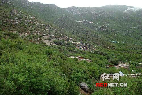 青朴海拔有4300米。“青朴”藏语意为山沟上部的青氏家族。其中“青”是指当时这里的青氏家族;“朴”指的是山沟的上部。青朴所在的山沟呈凹字形,三面环山。沿着山路我们继续前行,感觉眼前豁然开朗。从高处往下眺望,不远处是山间斜坡和悠长辽阔的雅鲁藏布江。山上流水潺潺,草木茂盛,鸟语花香。置身其中,我已完全不觉身处西藏,宛然一派梦中江南境地。