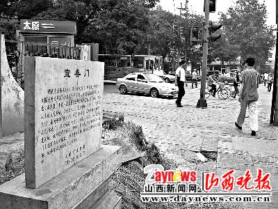 王先生是山西省建筑设计院的老职工,他说,太原明代有八大城门,宜春门俗称大东门,是旧城的东南门。他自己从小在这里长大,知道大东门具体位置应该是府东街省建筑设计院的左门处,而太原市文管局将宜春门纪念碑设立在东华门的街上。“文管部门会不会是弄错了?”王先生提出了自己的疑问。