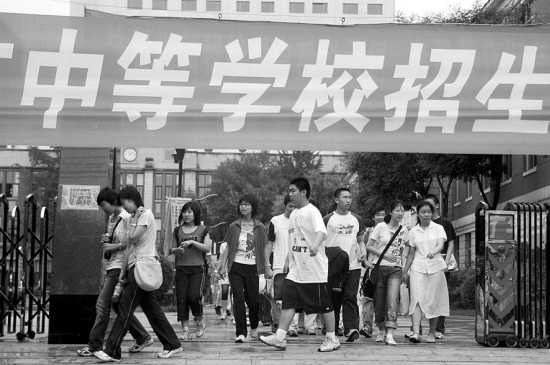 6月15日至18日,集体报名的应届考生在毕业生学校、单独报名的考生在区、县(市)招考办填报省级重点高中(含省级示范学校和同批次录取学校)、师范学校、市级重点高中(含同批次录取学校)、重点职业高中、一般高中、普通中专、一般职业高中志愿。