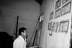 △杨丙祥看着儿子生前的奖状,悲痛不已。