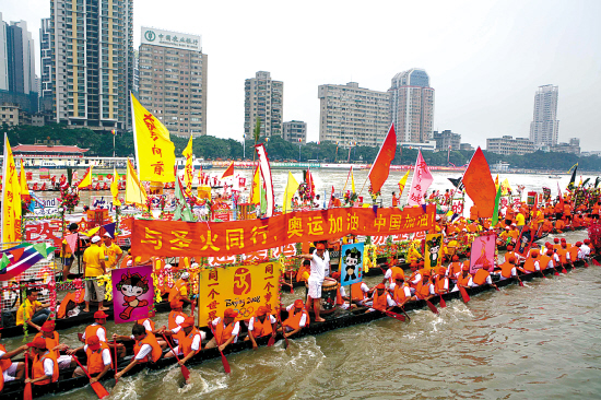 赛龙舟,广州人称“扒龙船”, 是广州人过端午节最大的活动项目。可喜可贺的是,这一民间传统习俗,将首次“划入”亚运体育竞赛项目,在2010年广州亚运会上一展风采。