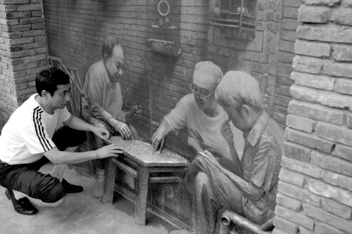 昨日,成都天气开始放晴,很多市民、游客涌至宽窄巷子,几乎所有路过都会在这里止步拍照。“第一次看见这样的墙,如此立体,仿佛真的回到老成都的生活巷子……”大树下下着象棋,旁边的树上挂着鸟笼;一个年轻男子骑着三轮车,正在回来看已经滑落的满车小石块……“这些都是当时老成都的照片,没有一张是虚构雕塑的。”本报记者 于婷