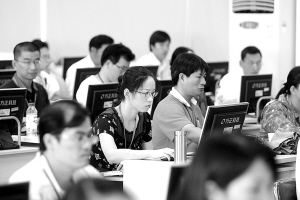 在华师主教学楼,有一层楼全部是语文科的评卷场。今年3500名评卷老师中有1150人是负责语文评卷的。记者进入评卷场时,老师们正在聚精会神地评阅作文题。
