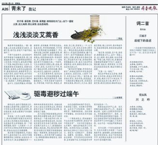 □6月6日刊登王兆山两首词的齐鲁晚报“青未了”副刊版面及王兆山两首词全文