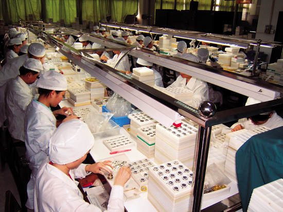 五十年的历史沉淀和先进的技术震撼了市场。这个曾经有过几千人的国企工厂,在“瘦身”之后,700多人的企业每月能同时生产十大系列300多个品种,产量高达10多万只,其中70%以上出口到全世界。
