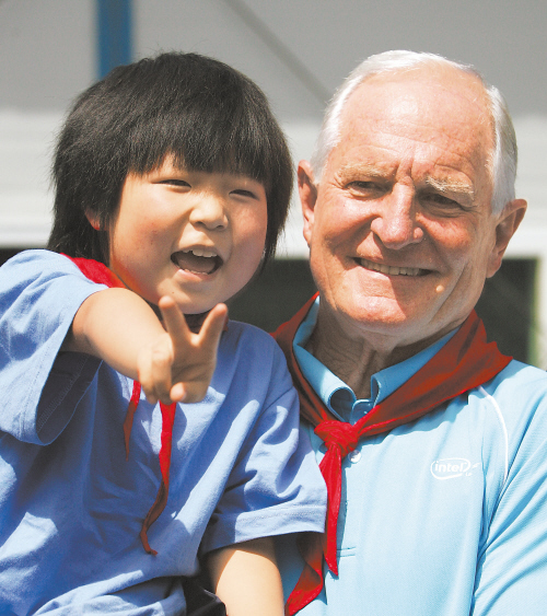 昨日上午,英特尔公司董事会主席贝瑞特博士前往彭州市访问了龙门山镇九年制学校。市委副书记唐川平全程陪同贝瑞特博士在彭州进行访问。