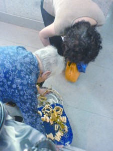 在南京东路地铁站3号出入口,行色匆匆的人们,常会被一位白发阿婆吸引、驻足。阿婆是卖白兰花的,梳着一丝不乱的发髻,穿着泛白的蓝色对襟布衣,挎一竹篾的小篮子,篮子里湿湿的纱布下盖着整齐的白兰花。