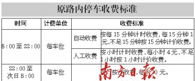 目前,对夜间路内停车的收费优惠办法为22:00至次日8:00实行按次收费,每次10元。但由于多数住户在19:00左右已回家,按现行停车收费政策需交22元,远高于7.5元的住宅小区室内停车收费标准。