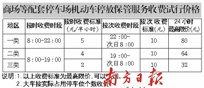 在新的方案中,从7月1日起,商场、娱乐场所、宾馆酒店、写字楼、物流园区和专业市场等配套停车场收费不再自主定价,而改为政府指导价。同样,商场配套停车场的收费标准也分三类地区,并参照路内停车场的收费标准制定试行价格。市物价局强调:“试行价格为最高限价,停车场可以下调,但不能超过。”据邱亿通介绍,“实行价格起码实施半年以上,待进一步研究讨论后,才能制定执行正式价格。”