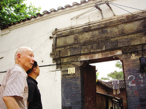胡老先生边走边看,一路上胡老不时地询问居住在这的住户:“王家还在这吗?”“你姓严吗?”老先生告诉记者,他以前来过很多次,哪的房子住着什么人他都记得。走进胡家花园3号深处的一间院落,胡老轻敲一处房门,一位老人正半倚在床上看电视,记者说明来意后,胡老忙问:“你是二叔的孩子吗?”那位老人也问道:“你是胡大农的儿子?”两位老人逐渐认出了对方。这位也已经头发全白的老人正巧是胡老年轻时的伙伴。