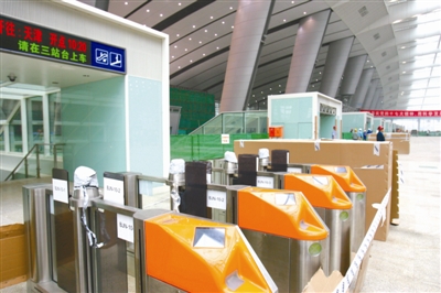 新北京南站将首次尝试自动售检票模式。在新南站的高架候车厅,东西两侧各有11个检票口整齐排列,入口处正在安装与地铁类似的自动刷卡闸机。旅客买完票后刷卡进站,乘自动扶梯就能直接下到一层对应的站台。