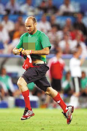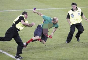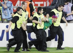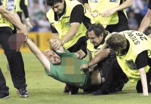 事实上,很多国内球迷对这名闹事男子并不陌生。身为西班牙巴萨罗那俱乐部球迷的他,在上届欧洲杯决赛上,就曾冲进场内,把巴塞罗那俱乐部的横幅砸在“叛徒”葡萄牙球星菲戈的脸上。