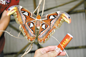 随后,记者走访了凤岗镇农林办,一名工作人员对巨蛾进行了初步鉴定,确认是一种名叫“皇蛾”的罕见飞蛾品种。“这种飞蛾体形本来就比一般品种要大得多,但是这几只能长这么大实属罕见!”