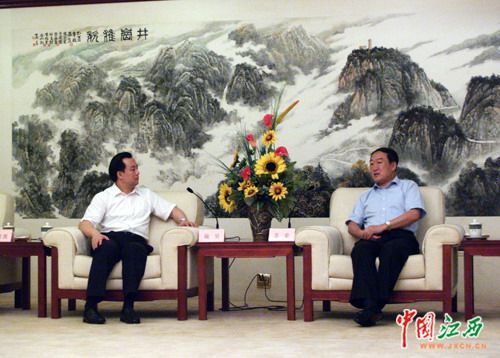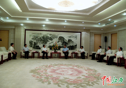 7月3日晚,江西省委书记苏荣在南昌会见了来江西调研工作的共青团中央书记处第一书记陆昊。图为会见现场。(江西网记者 沈德森 摄)