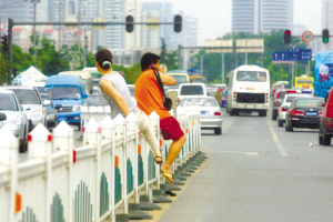 6. 怕麻烦,过街天桥爬上爬下累得慌,还不如直接翻护栏,省事。